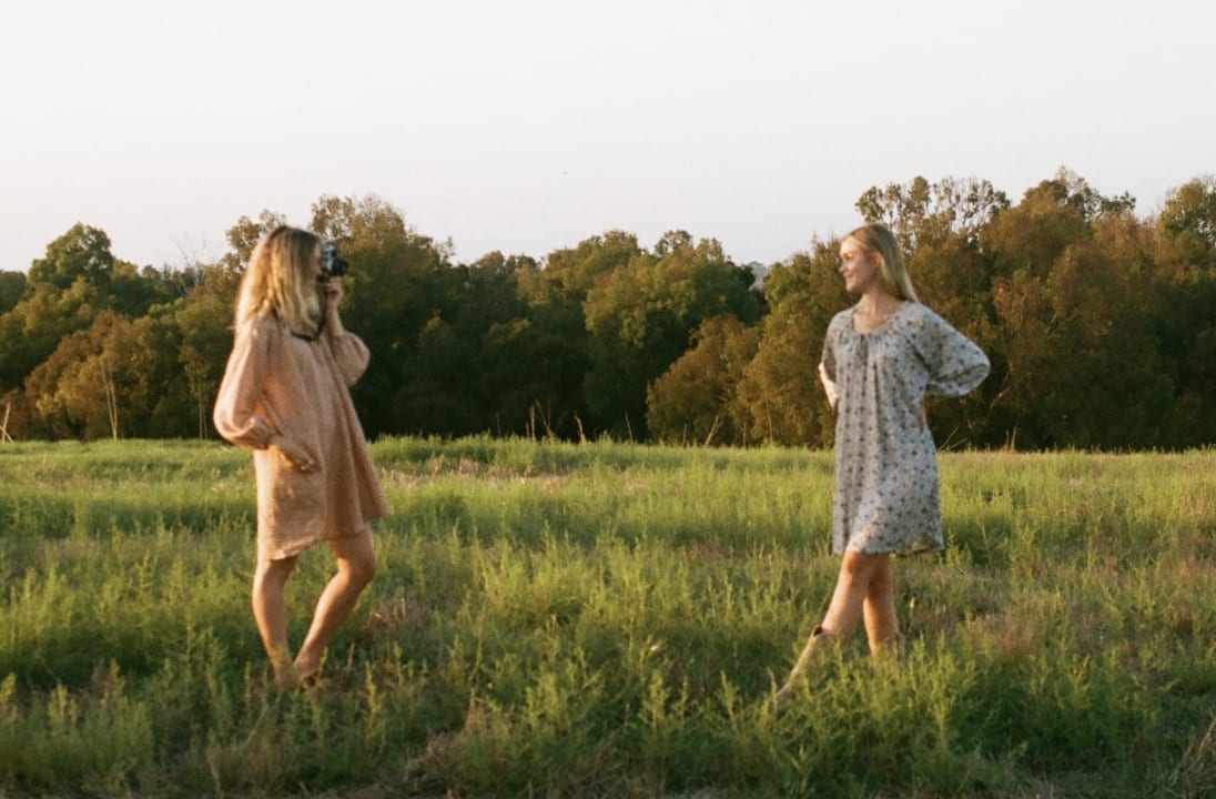 It was a photo of the Eden Set that first caught my eye—a chocolate brown, romantic and effortless silhouette that my fall wardrobe was desperate for. Wearing the must-have was designer and founder of Coco Maisonette, Coco Jensen. She styled the set with gold earrings and a bandana and snapped a vintage-felt photo by tall grass and a wooden fence.